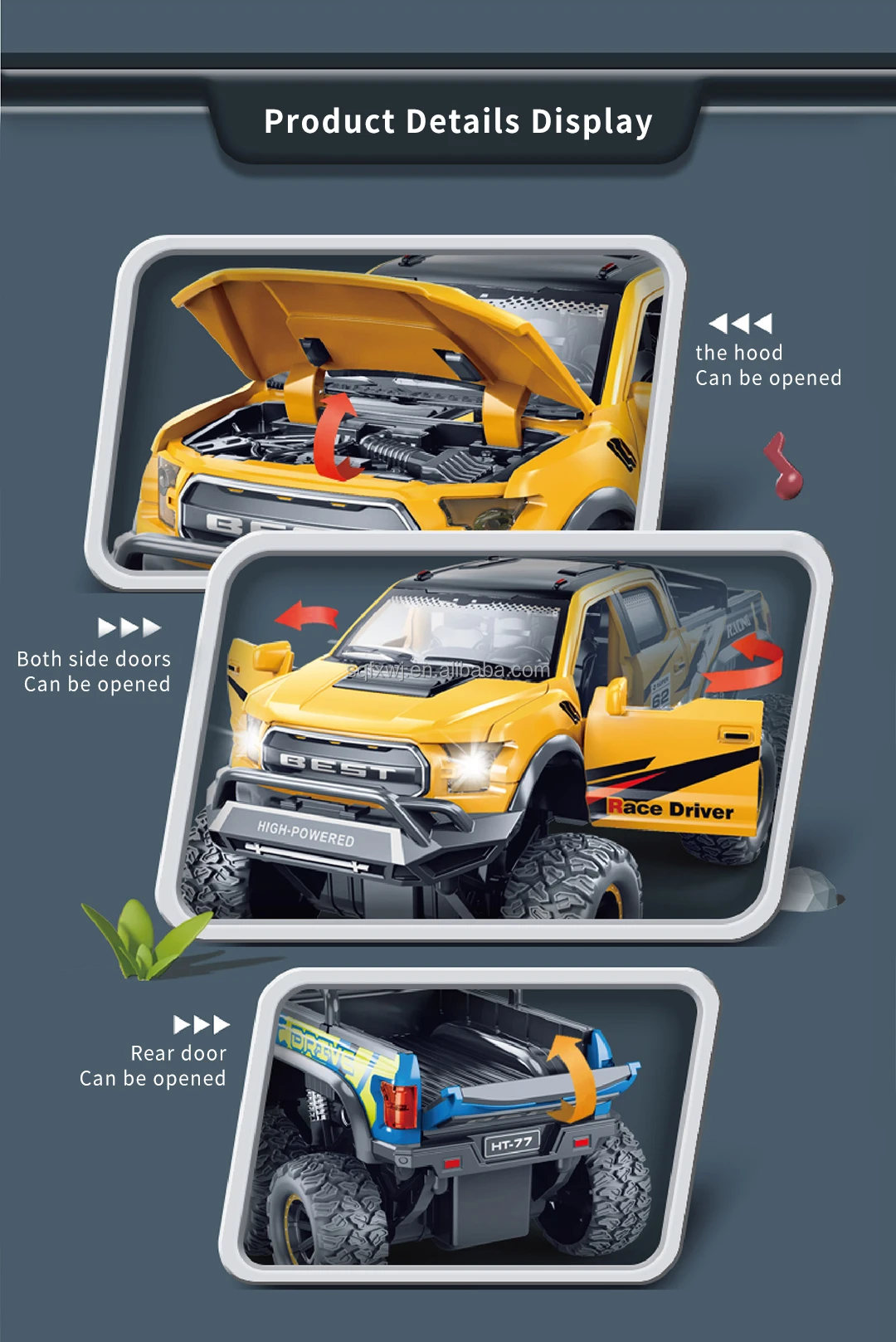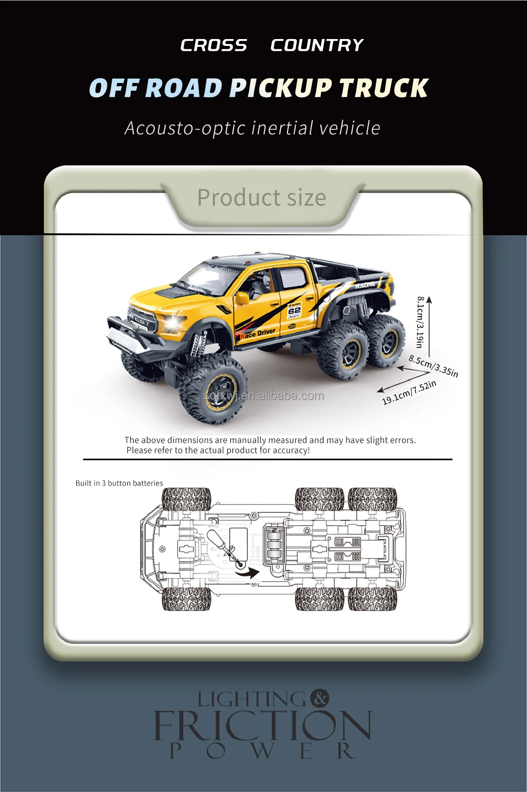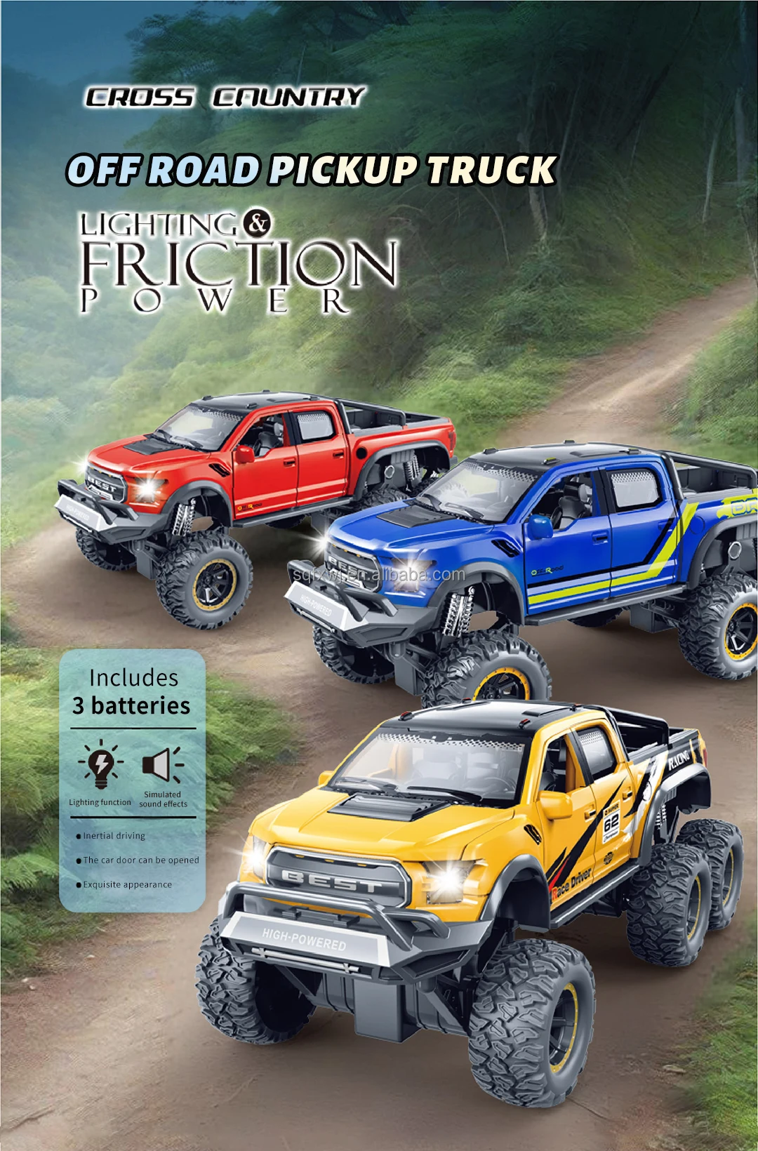 New Large-Size Pickup Truck Model with Sound and Light Features Monster Truck Off-Road Vehicle with Oversized Wheels Children's Toy Car